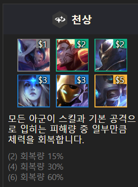 다른 조합이라도 피 회복량을 추가해주고 싶을 때 2 시너지로도 활용성이 높음